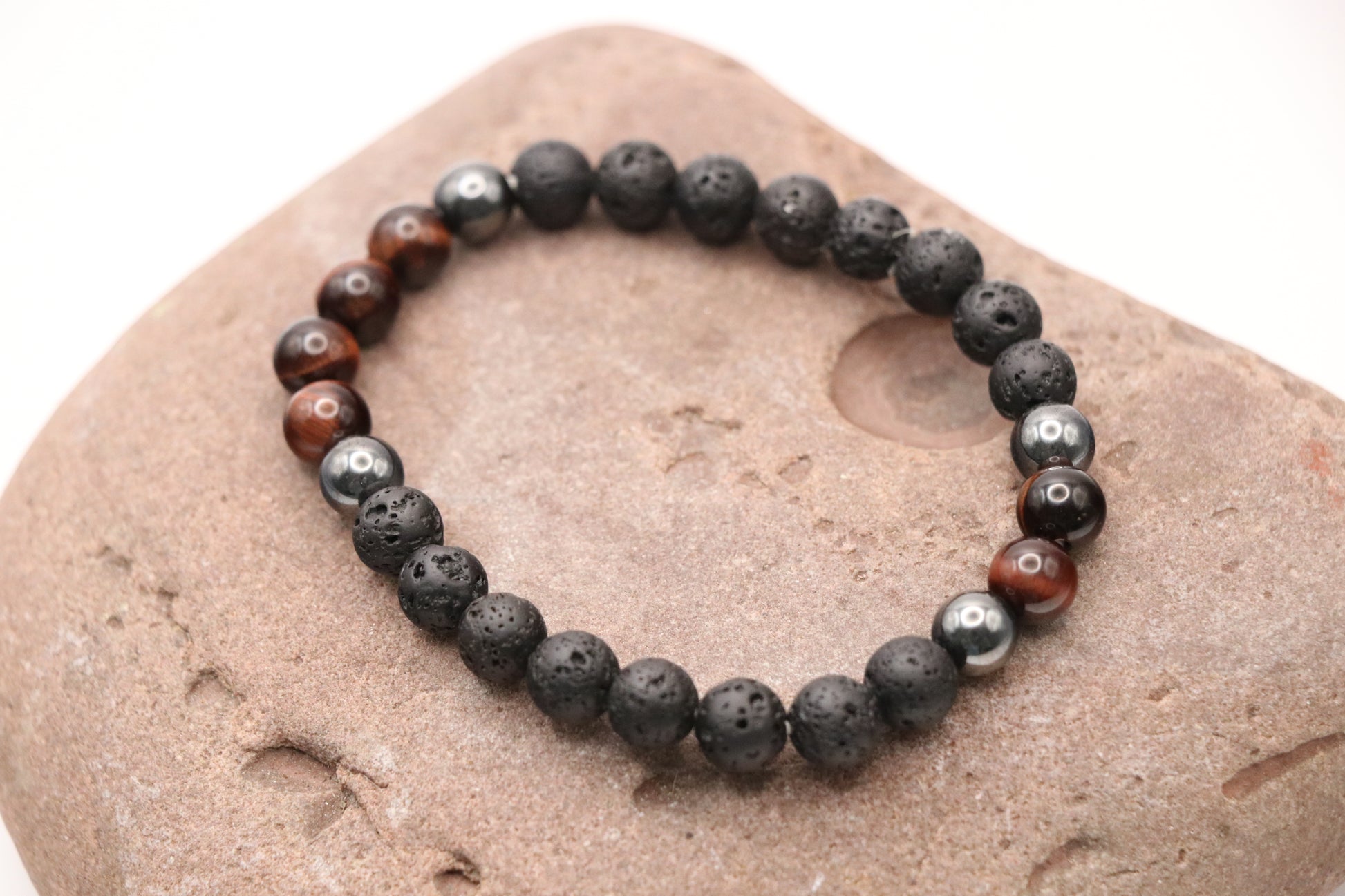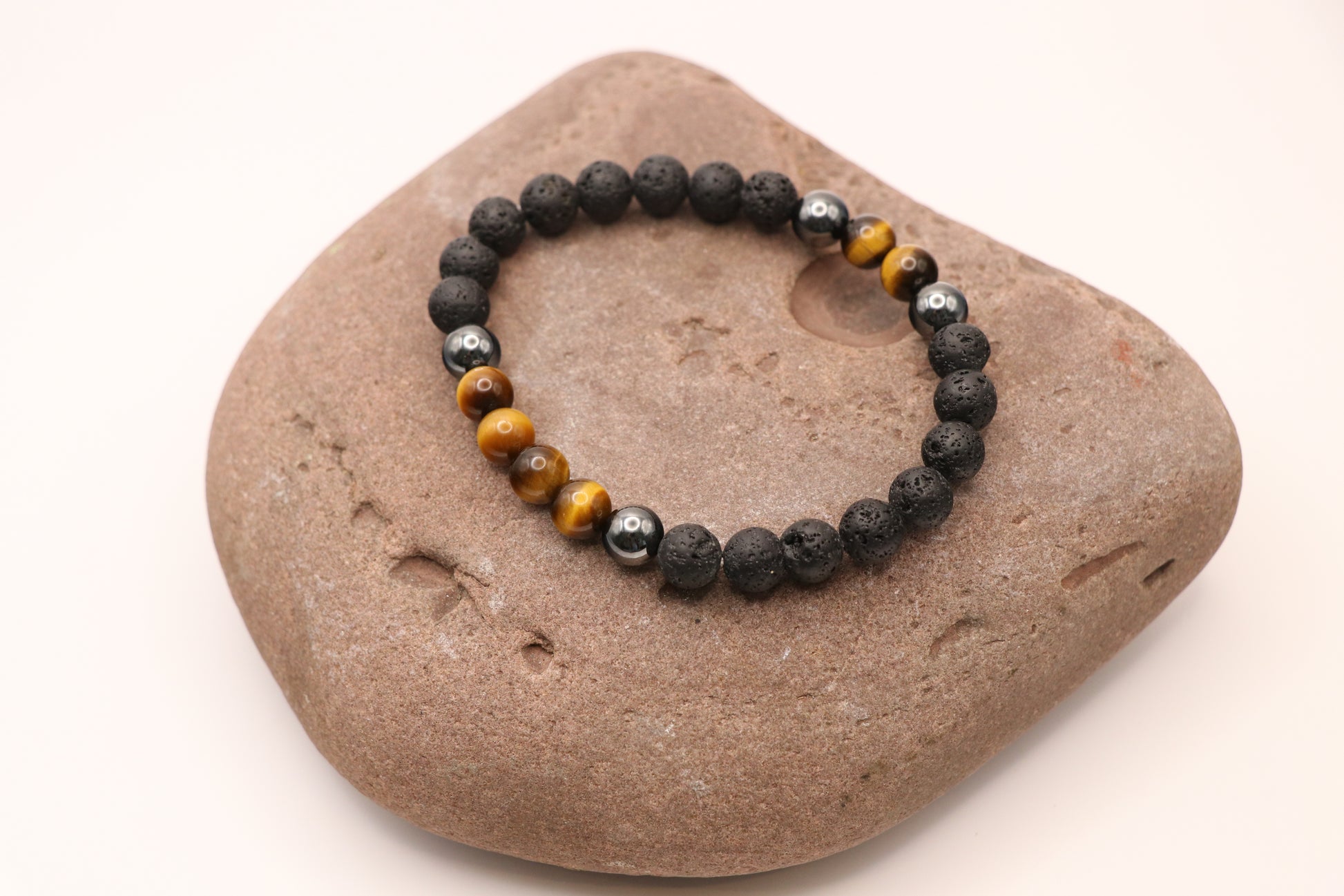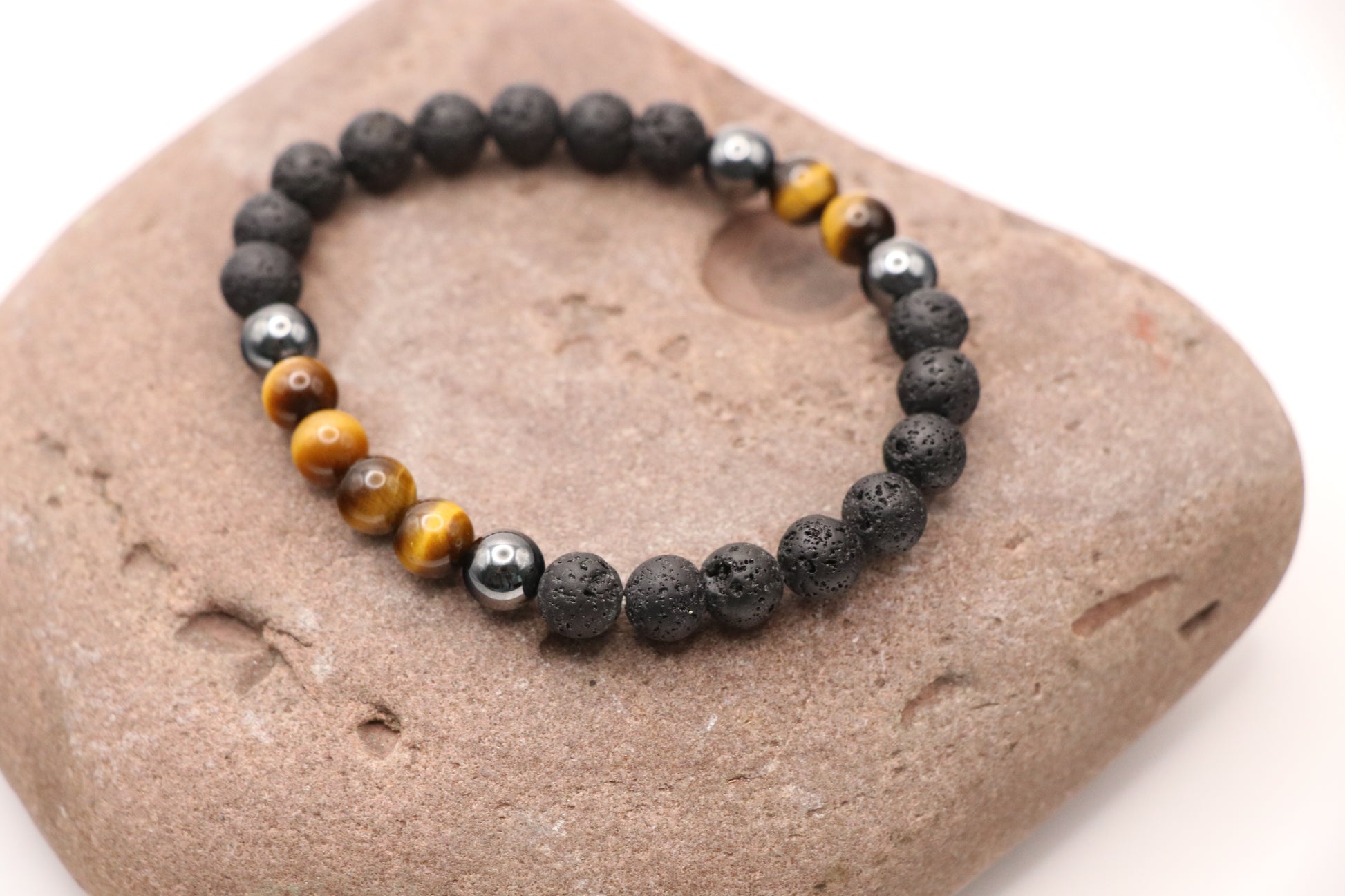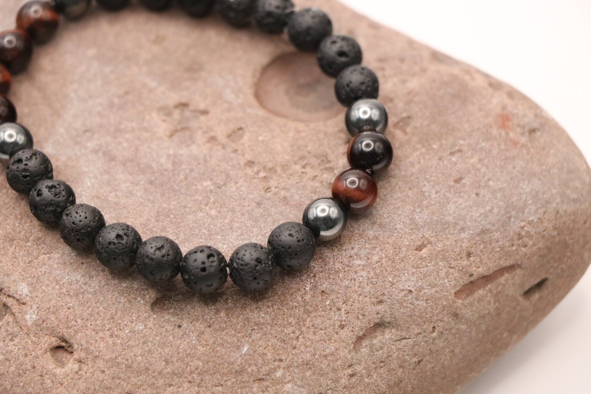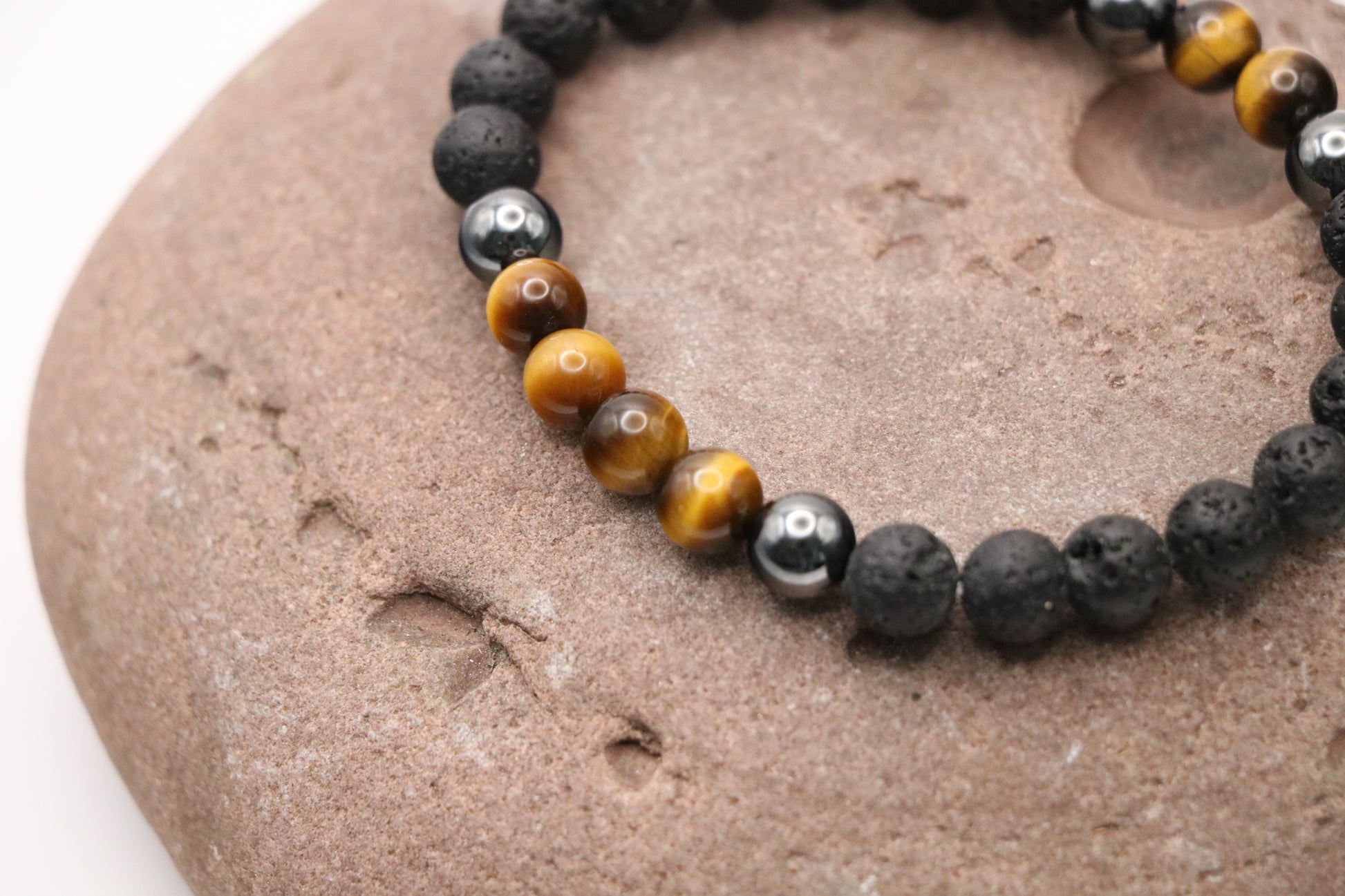 Armkette aus Lavastein mit Tigerauge oder Magnesit