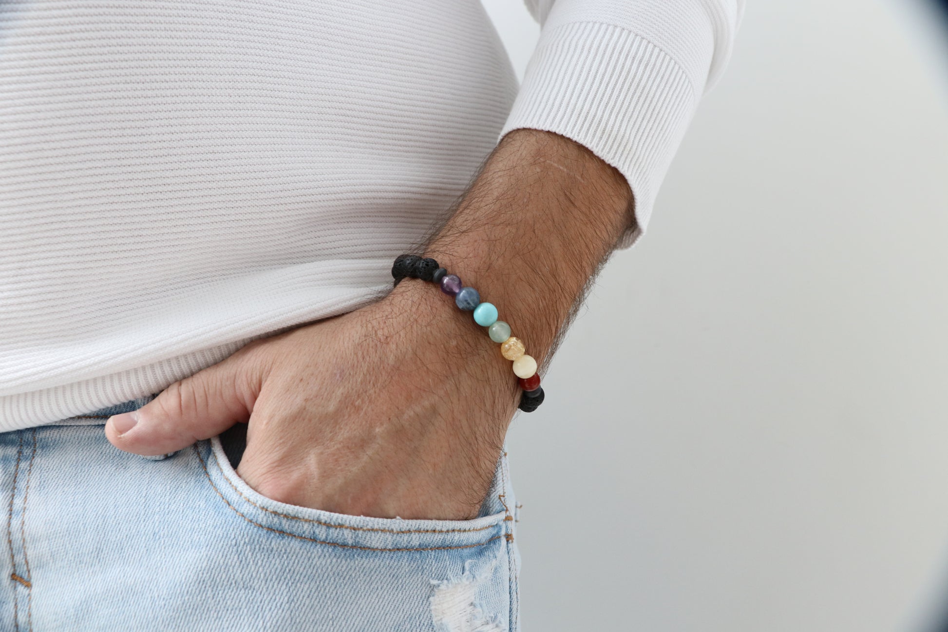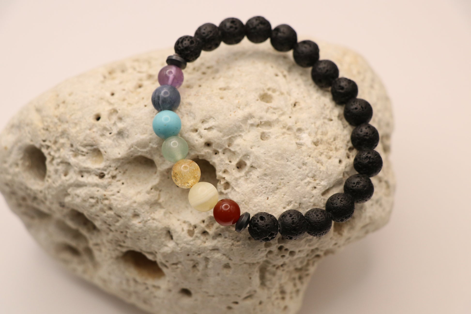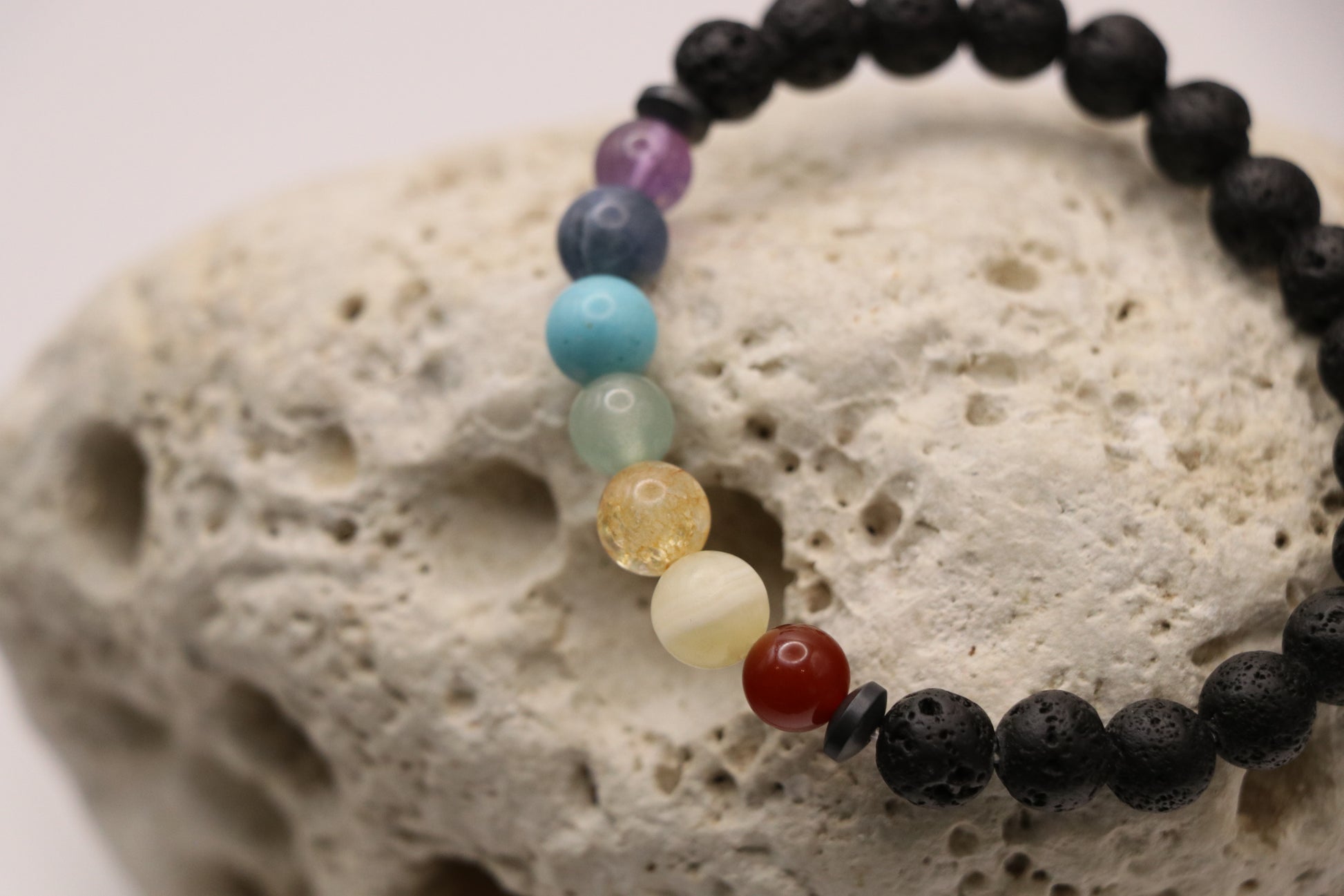 Armkette aus Lavastein und Steinen in Farbe der Chakren